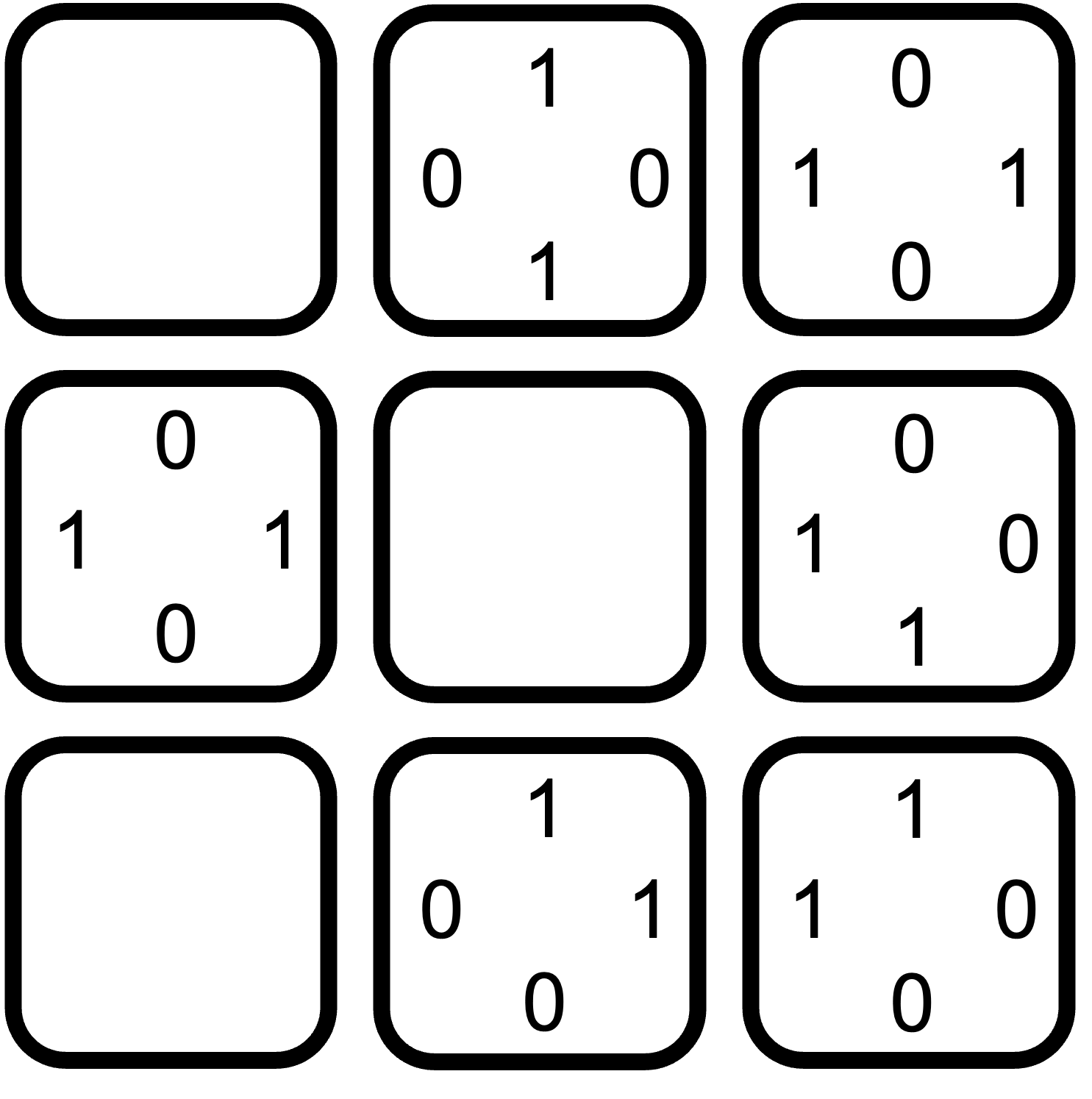 위와 같은 그림인 상황에서 끊겨있는 곳에 어떤 블록이 필요한지 확인해야 한다고 가정해보자. 만일 상하좌우 인접한 칸의 블록의 모양을 그때마다 확인해야 한다면 많은 조건문이 필요할 것이다. 그렇다면 조금 생각을 바꿔서 상하좌우 인접한 칸이 현재 칸 쪽으로 연결되는 상황인지 확인하는 것은 어떨까?
